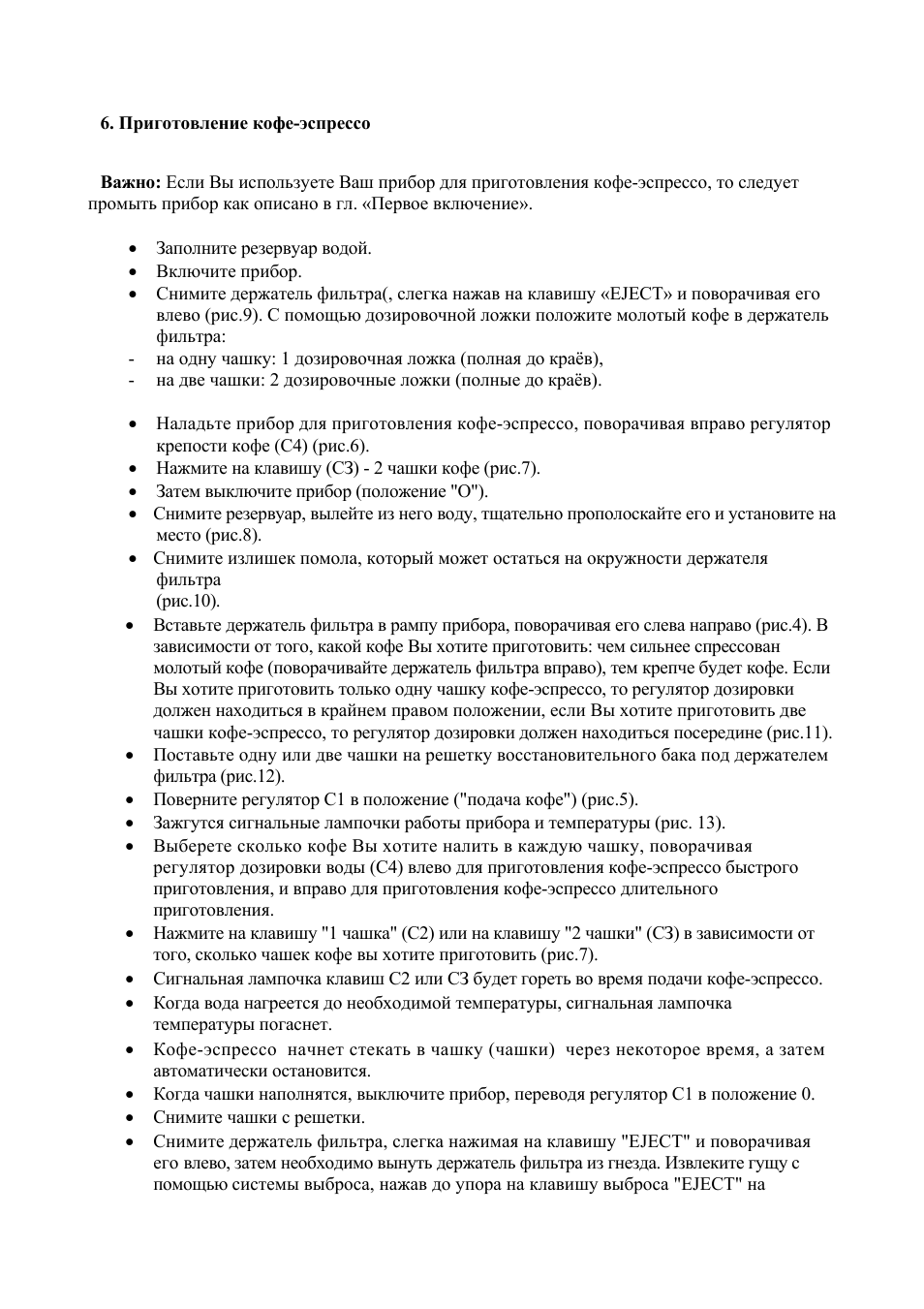 Если Вы используете Ваш прибор для приготовления кофе-эспрессо, то следует