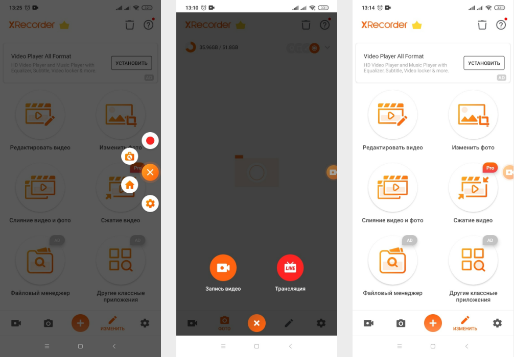 - с помощью Xrecorder на Андроид можно не только записывать видео, но и проводить онлайн-трансляции. Опция будет полезна тем, кто стримит мобильные игры;