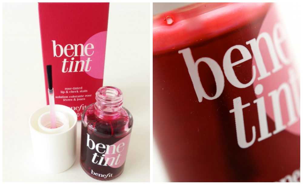 Тинты для губ Бенефит, не смотря на свои недостатки и высокую стоимость, остается бестселлером на протяжении нескольких лет. Упаковка напоминает лак для ногтей, наносится жидкий пигмент кистью. Многие девушки чаще используют его в качестве румян, так как средство сушит кожу губ, а при нанесении на бальзам не отличается стойкостью.