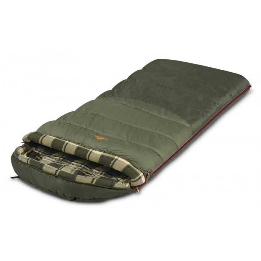 Такой надежный спальный мешок является незаменимым для рыбалки, охоты или при условии отдыха в холодный период времени. Изделие рассчитано на достаточно низкие температуры. Этот эффект достигается благодаря набивке шервисином — объемным утеплителем, изготовленным из овечьей шерсти
