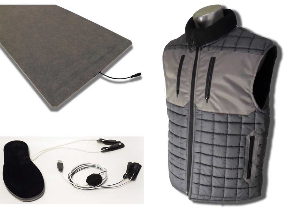 Эта же компания предлагает продукцию с электрообогревом на батарейках. Внешний аккумулятор подключается через классический разъем USB, а три режима обогрева можно переключать с помощью кнопки изнутри. При этом «Вольфрам Тракт» от марки «Северный путь» разрешается стирать в машинке, потому что вся проводка качественно защищена от проникновения влаги.