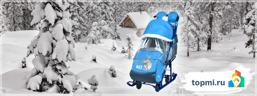 - Для ветреных дней. Состоит такая конструкция из полозьев, ремней, козырька и тента для защиты ножек малыша от внешних воздействий. Ручка — специальная, есть возможность крепить сумку с покупками и большой карман, главное достоинство — в отличной защите от снега и ветра на улице.