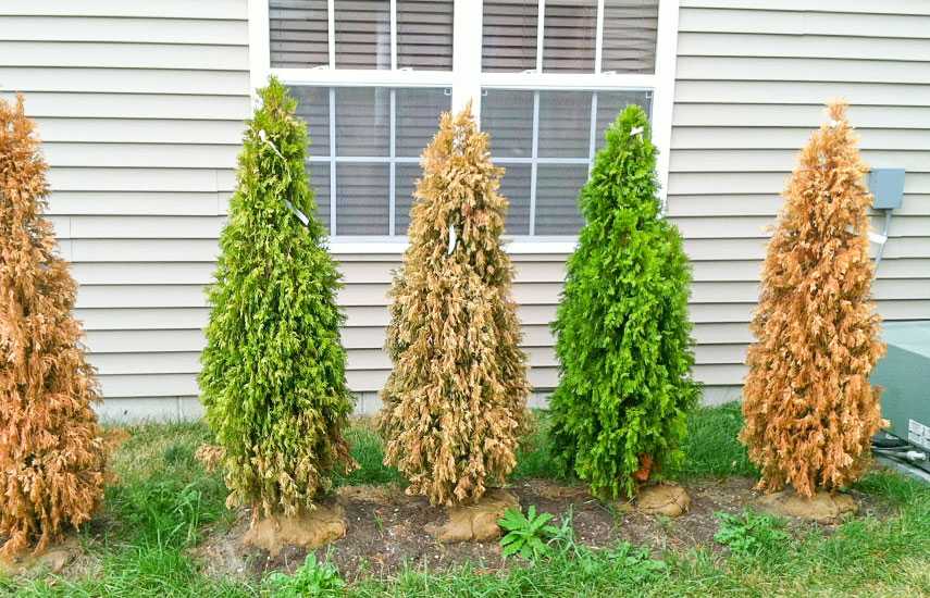 Важно посмотреть, не сыпется ли хвоя, так как одна из биологических особенностей туи – долгое сохранение насыщенного цвета после гибели. Ничего не должно сыпаться