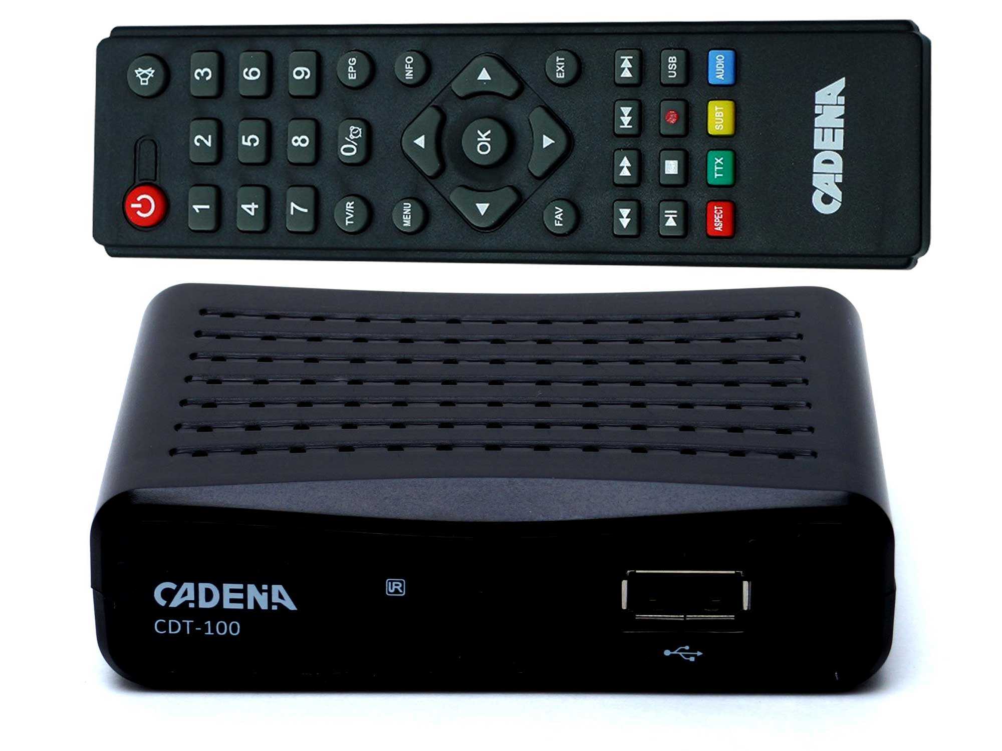 - Cadena – фирма предлагает купить антенны и ТВ-тюнеров для подключения к телевизору. Ее устройства стабильно обеспечивают хорошее качество принимаемого сигнала за счет высокочувствительных приемников. Благодаря опции «родительский контроль» аппаратура данной компании подходит и семьям с детьми. У них возможен как ручной, так и автоматический поиск каналов. ПО в приемниках – последних версий, при необходимости его можно также обновить через USB.