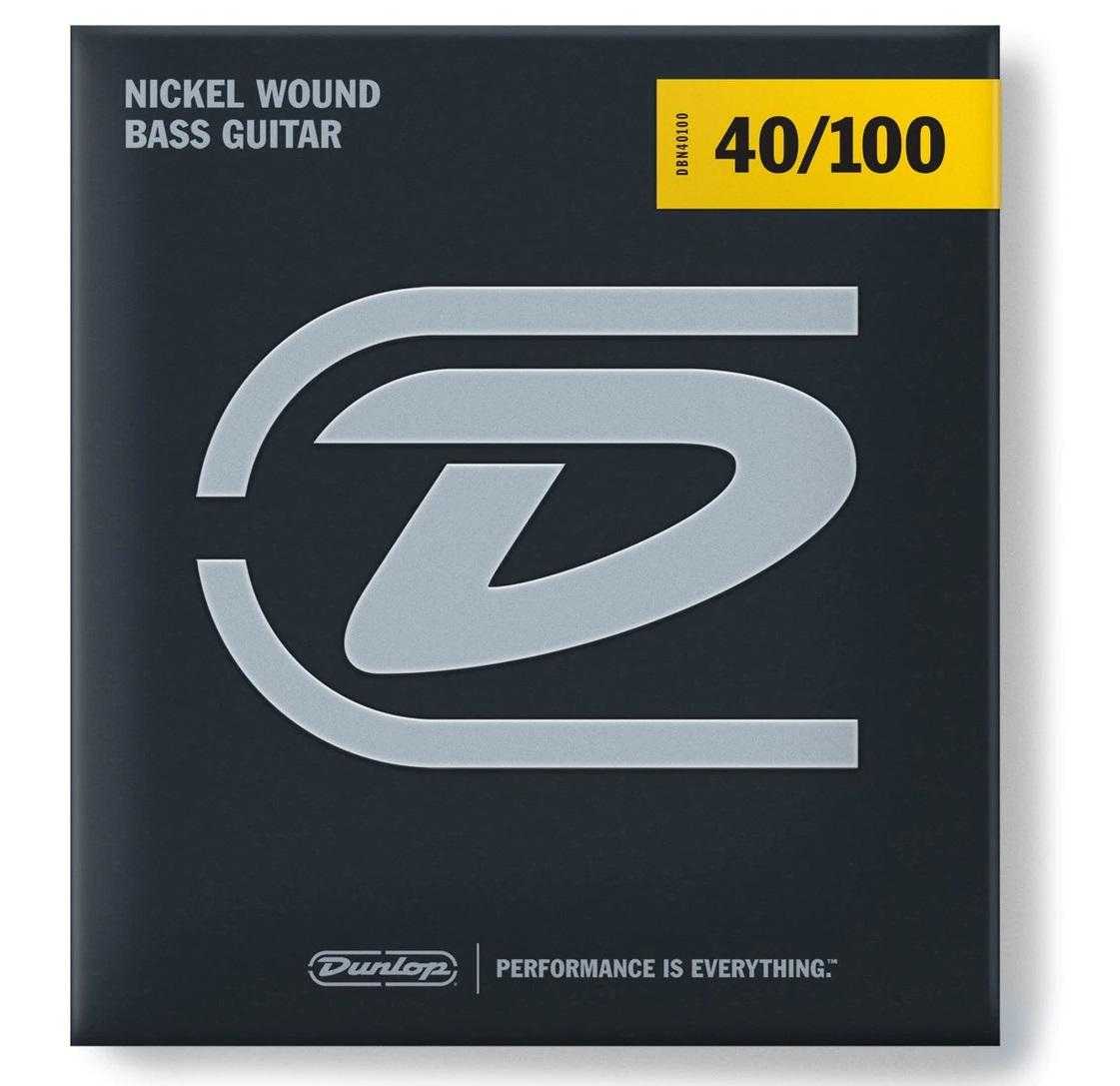 Четыре струны для бас гитары купить можно от производителя Dunlop. Они никелированные, имеют легкое натяжение, калибр от 40 до 100. Установить легко, поэтому поменять их сможет даже новичок.