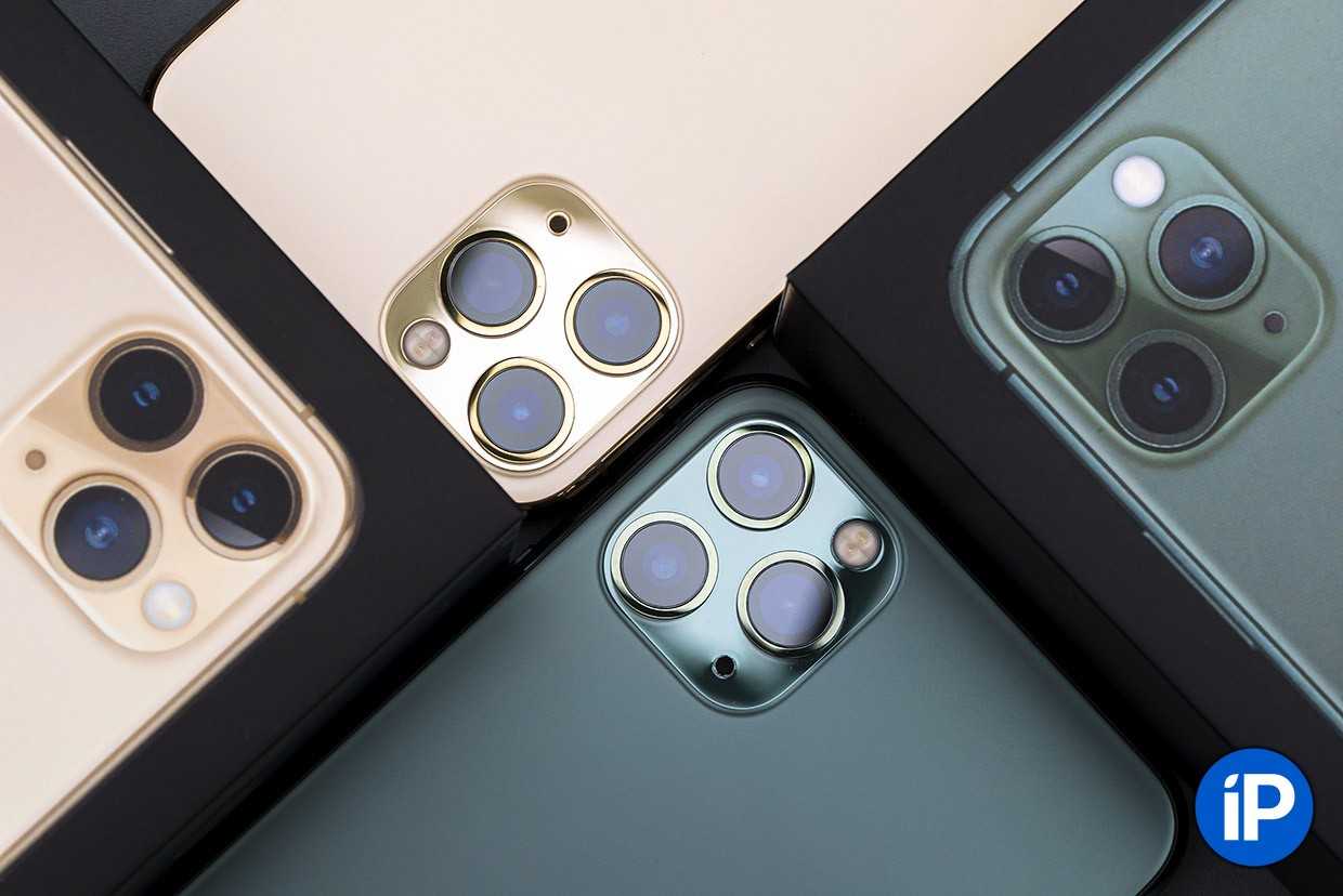 Обратите внимание, справа зелёный iPhone 11 Pro Max, но блестит синим