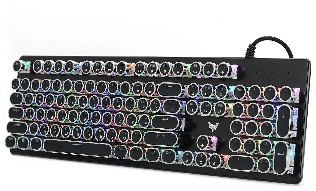 Игровая клавиатура с подсветкой от бренда OKLICK получила 104 клавиши с переключателями Outemu Blue. Она весит 1395 грамм, подключается USB проводом, имеет опрос 1000 Гц и ресурс клавиш в 10 миллионов нажатий. Подсветка здесь с 6 цветами. Устройство поддерживает 100% Anti-ghost и позволяет блокировать клавишу WIN в играх.