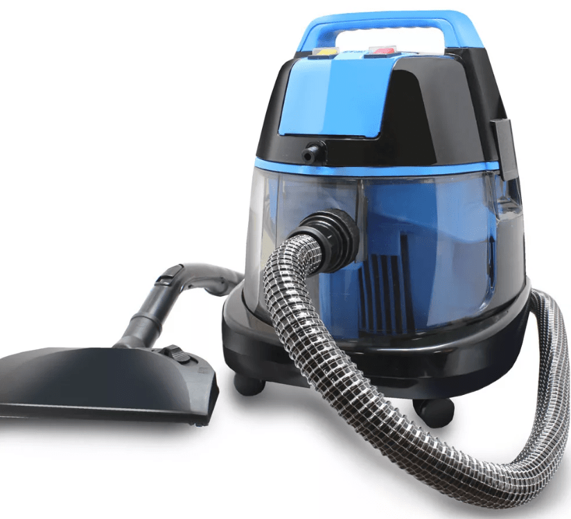 Принцип действия заключается в том, что пылесос распыляет воду, а затем вместе с пылью собирает ее обратно в специальный резервуар.